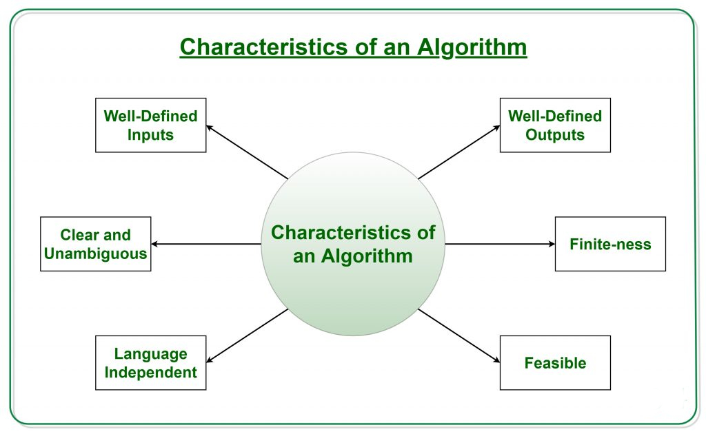 <figure><img src="https://847702634-files.gitbook.io/~/files/v0/b/gitbook-x-prod.appspot.com/o/spaces%2F6i4tTDVzxDUhKzBX7GT3%2Fuploads%2FFskQUecuYoJ1pMNwZ1EN%2FCharacteristics-of-an-Algorithm-1024x630(1).jpg?alt=media&#x26;token=bbf4d416-9e17-48ea-9a1d-284ce7c52e97" alt=""><figcaption><p>Characteristics of an algorithm.</p></figcaption></figure>
